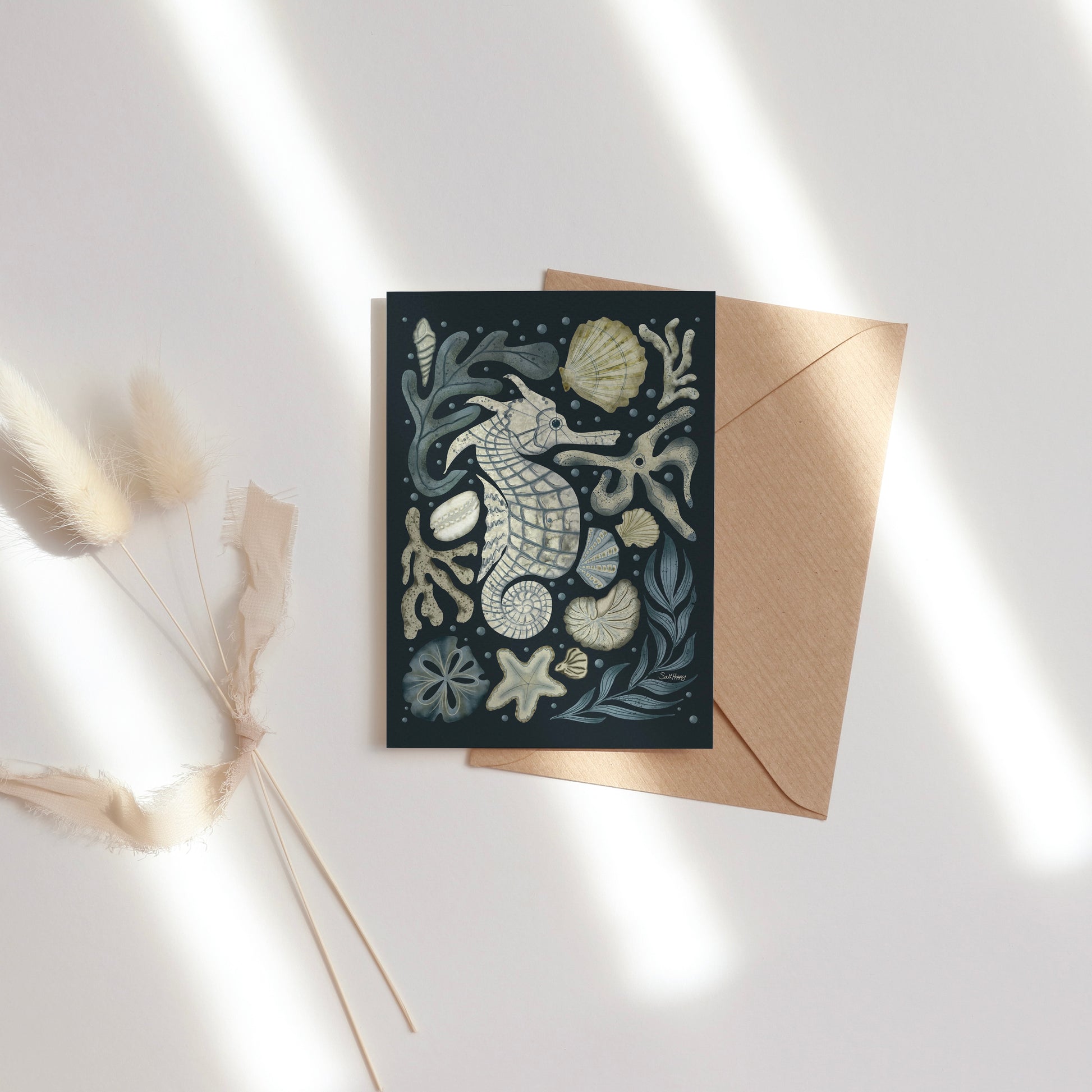 Seahorse Greeting Card – 4x5.5 Original Illustration – Blank Note Card with Envelope – Coastal & Nautical Stationery