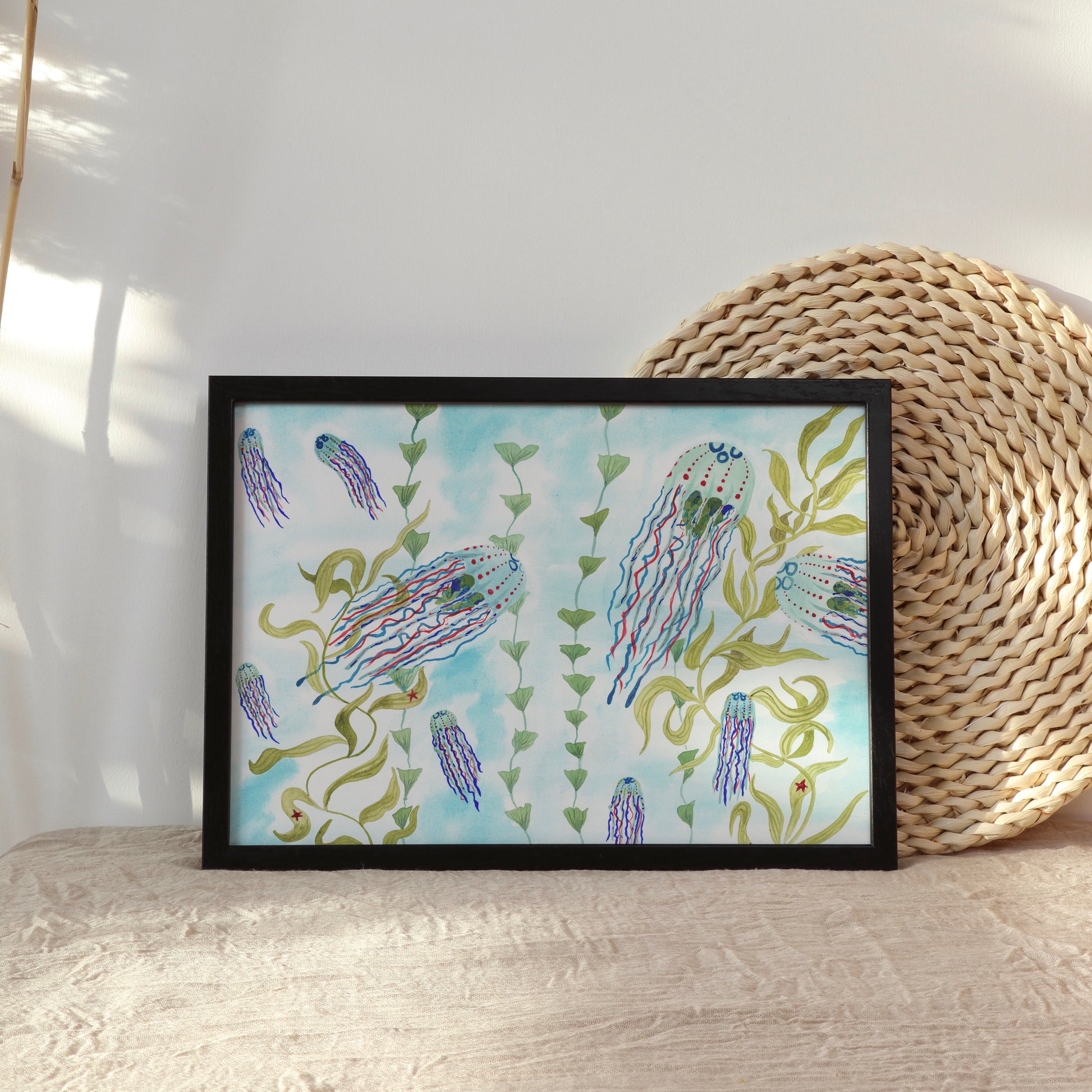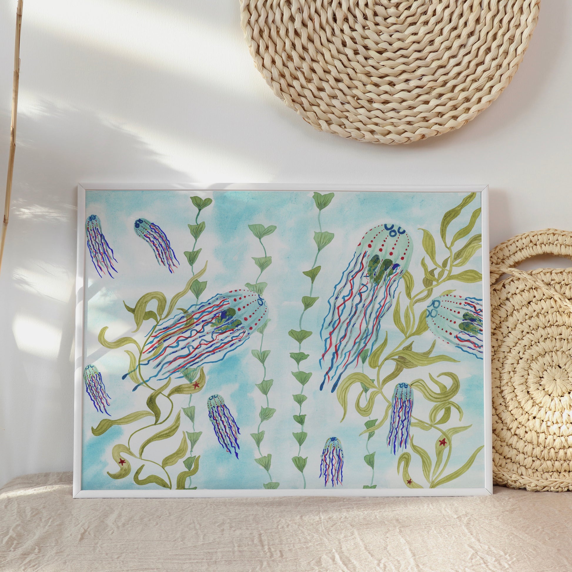 Print of "Jelly Swirl" original watercolor artwork by Chulynda Castellanos. This print is suitable for framing or an excellent gift for a lover of ocean art.